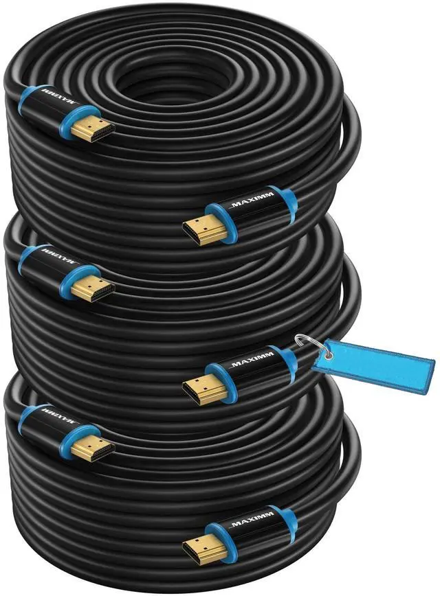 4K HDMI Cable Pack by Maximm is crafted with triple shielded 32AWG copper conductors with gold-plated connectors, ensuring premium high-speed and flawless 4K Ultra HD technology signal transmission and best image quality ^^ Monitor HDMI cable supports resolution up to 3840 x 2160 60 Hz, 4K video, 3D and multiple view, full HD, 1080p, HDR, enjoy crystal-clear TV with deep colors and high-resolution images, to get the best visual experience of ultra-high definition, with cinema-like sound via Dolby, ARC devices ^^ HDMI cable bundle nylon material for nice aesthetic look and added durability and flexibility that will not easily tangle, providing longer bending life and extra shielding that minimizes interference and signal noise ^^ HDMI cable 4k tested and certified to be compatible with HDMI 2.0 devices like HD TV, computer, monitor, audio devices, gaming consoles, laptops, projector, and backwards compatible with previous HDMI 1.4, 1.3 & 1.2.