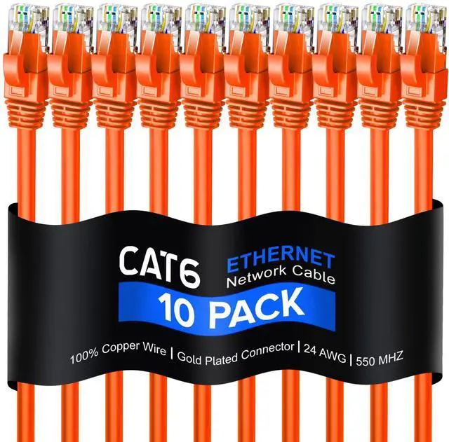 Maximm Cat 6 Ethernet Cable 12 Ft, 100% Pure Copper, (10 Pack) LAN Cable, Patch Cable and Network Cable - UTP (Orange) 12 Feet