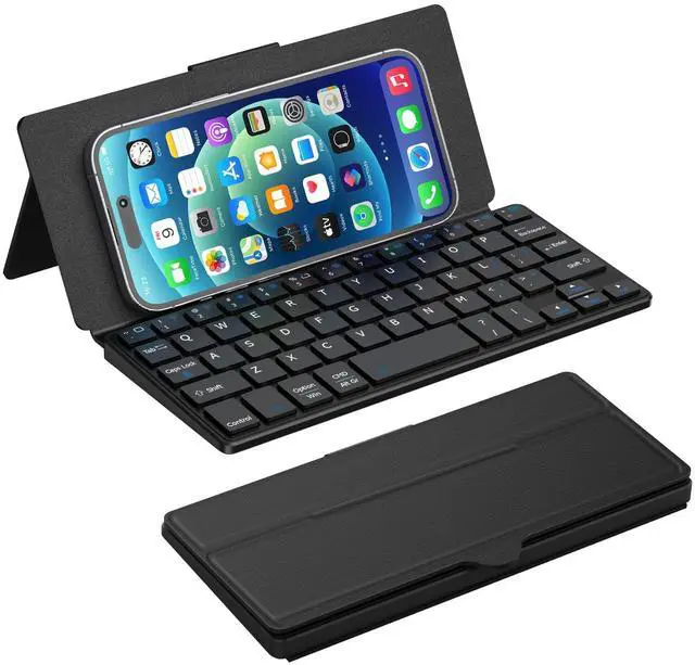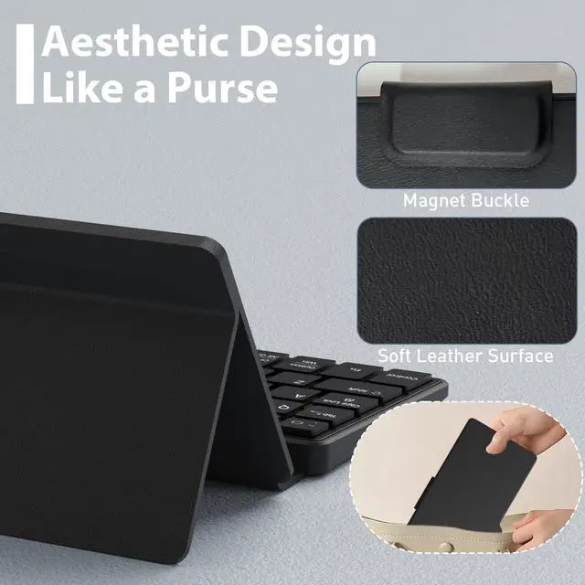 Doohoeek Universal Bluetooth Keyboard for Samsung Galaxy Z Fold, iPad Mini 7 2024 & Phones, Dual Bluetooth Mini Keyboard with Any-Angle Kickstand & Leather Cover for Android, Windows and iOS