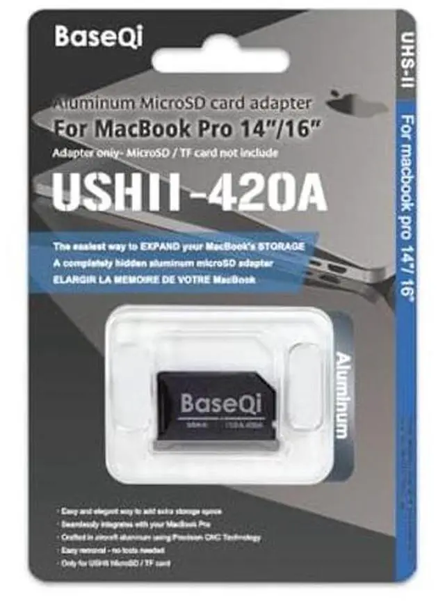 Generic BASEQI UHS-II Aluminum microSD Adapter for 2021 M1 MacBook Pro 14"" & 16" (Space Black, Adapter), isda420a