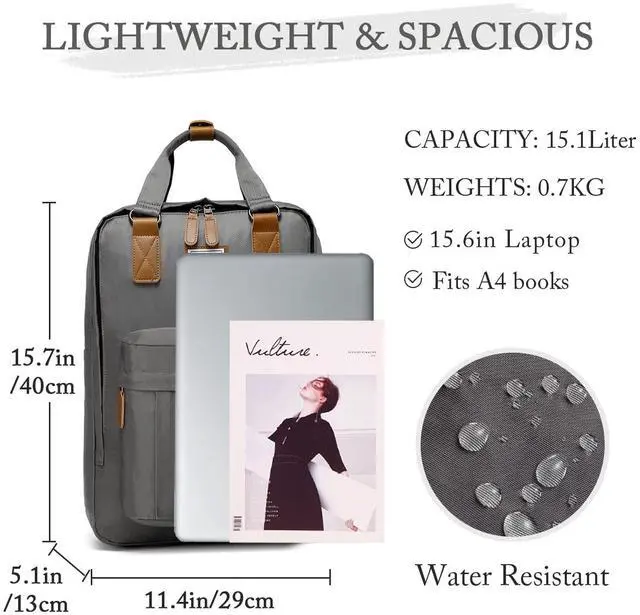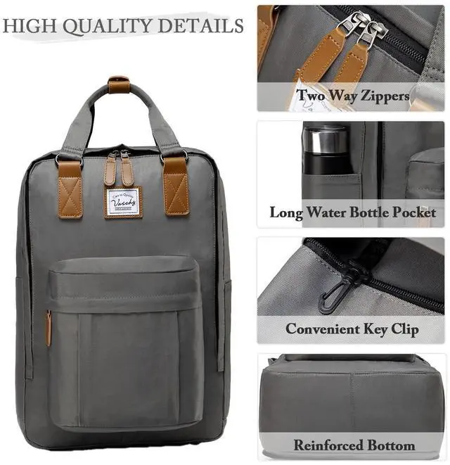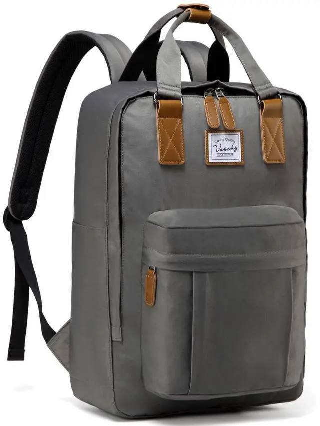 VINTAGE DESIGN:The Vaschy laptop backpack is made of high quality water resistant fabric,which is soft and durable.The vintage backpack features a rectangle and streamlined design with adjustable shoulder straps for a better overall fit. The two top handles for hand toting the backpack makes it more convenient and comfortable to carry.