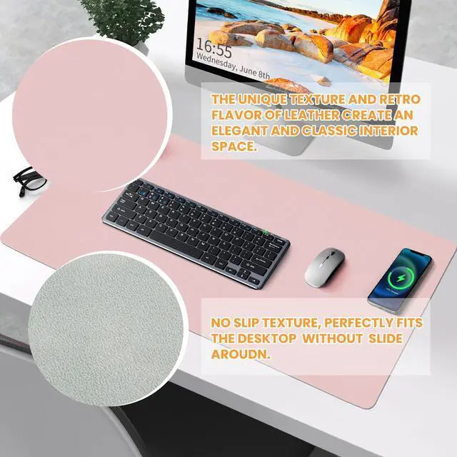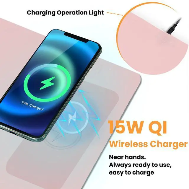 Desk Mat Wireless Charging Mouse Pad Large 32x16 Journey Desk Pad Mat with Wireless Charger Waterproof Pink Leather Computer Mat with Phone Charger Mousepad Non-Slip for Keyboard and Mouse