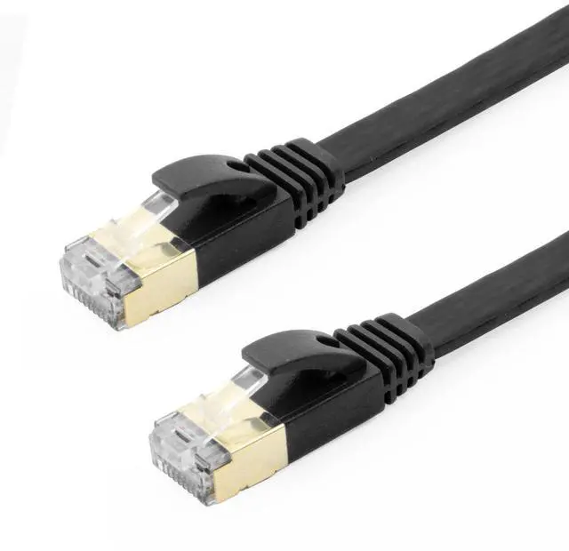 • Buhbo 25 ft CAT7 Flat Ethernet Cable Shielded STP Network Snagless Cable RJ45 Cat 7 (5-Pack) Black