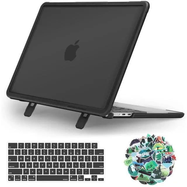 MOSISO Compatible with MacBook Air 13 inch Case 2025-2022 M4 A3240 M3 A3113 M2 A2681, Heavy Duty Shockproof Hard Case with Fold Kickstand&Keyboard Cover&Decals for MacBook Air 13.6, Black