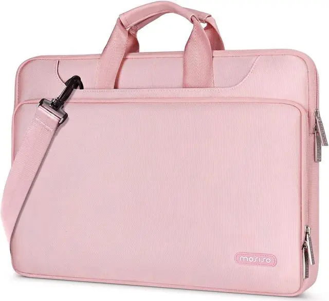 MOSISO 360 Protective Laptop Shoulder Bag Compatible with MacBook Air 15 M4 A3241 M3 A3114 M2 A2941/Pro 16 inch M4 M3 M2 M1, 15- 15.6 inch Notebook, Matching Color Sleeve with Belt, Pink