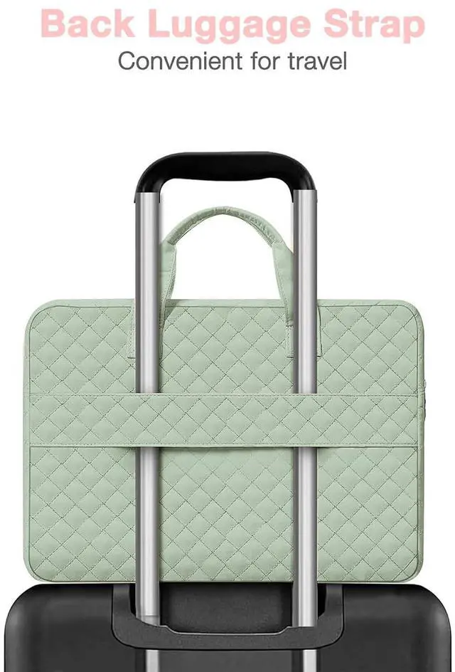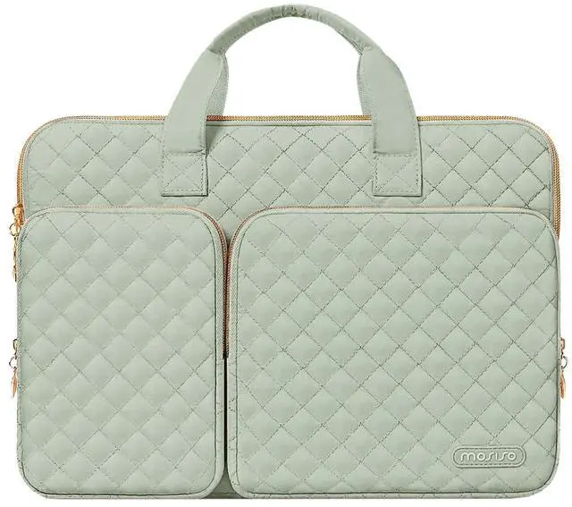 Why should take this bag? You can take this MOSISO square quilted polyester laptop sleeve bag with 2 front separate pockets & fix handle & back belt to hold your laptop while you are on the go.