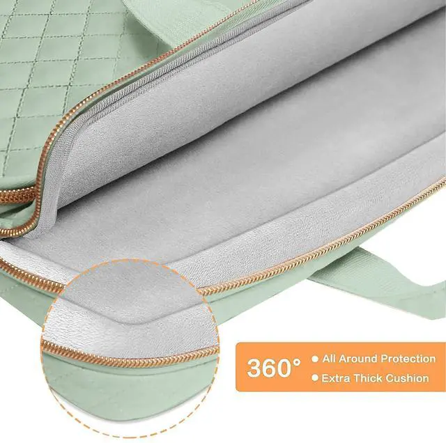 360 degree all around protective reinforced interior edge briefcase carrying case bag protect your laptop from any accidental dropping. Features a polyester foam padding layer and fluffy cushion for bump and shock absorption and protection of your device against dust, dirt, bump, shock and accidental scratches.