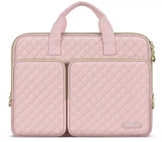 MOSISO 360 Protective Laptop Case 16 inch, 15- 15.6 inch Laptop Sleeve Compatible with MacBook Pro 16 inch, HP Acer Dell Lenovo ASUS, Square Quilted Bag Cover with 2 Pockets&Handle&Belt, Chalk Pink