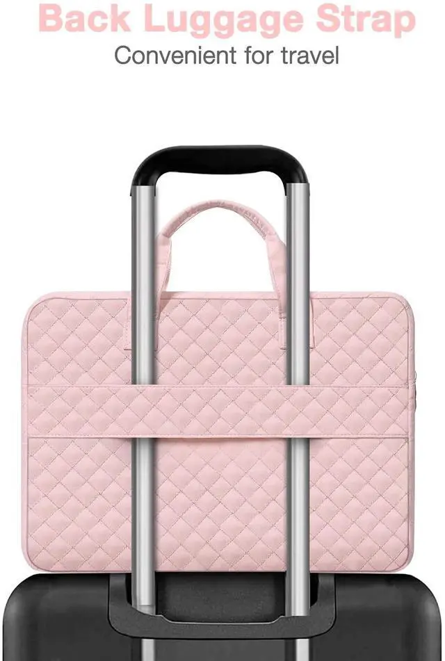 MOSISO 360 Protective Laptop Case 16 inch, 15-15.6 inch Laptop Sleeve Compatible with MacBook Pro 16 inch, HP Acer Dell Lenovo ASUS, Square Quilted Bag Cover with 2 Pockets&Handle&Belt, Chalk Pink