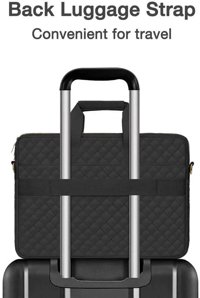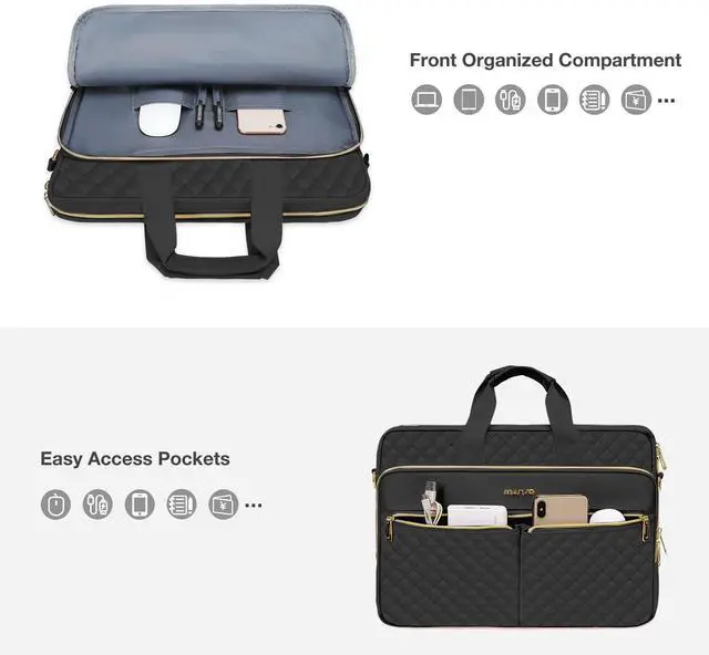 MOSISO 15- 15.6 inch Laptop Bag, Briefcase for Women&Men, 16 inch Square Quilted Computer Messenger Bag Office Travel Business with 3 Pockets&Strap, Black