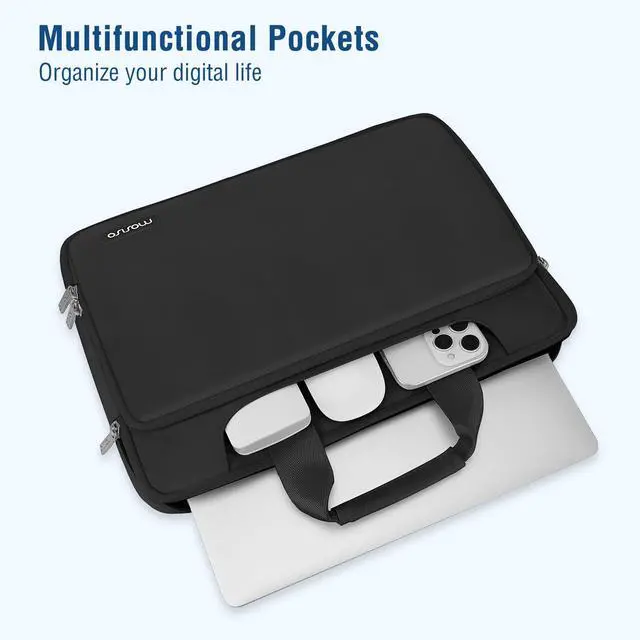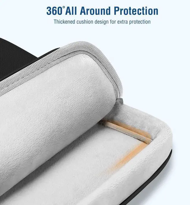360 degree all around protective reinforced interior edge protect your laptop from any accidental dropping. Features foam padding layer and fluffy fleece fabric lining for bump and shock absorption and protection of your computer from accidental scratches. Top-loading double zippers on the bag glide smoothly and allows convenient access to your laptop computer.