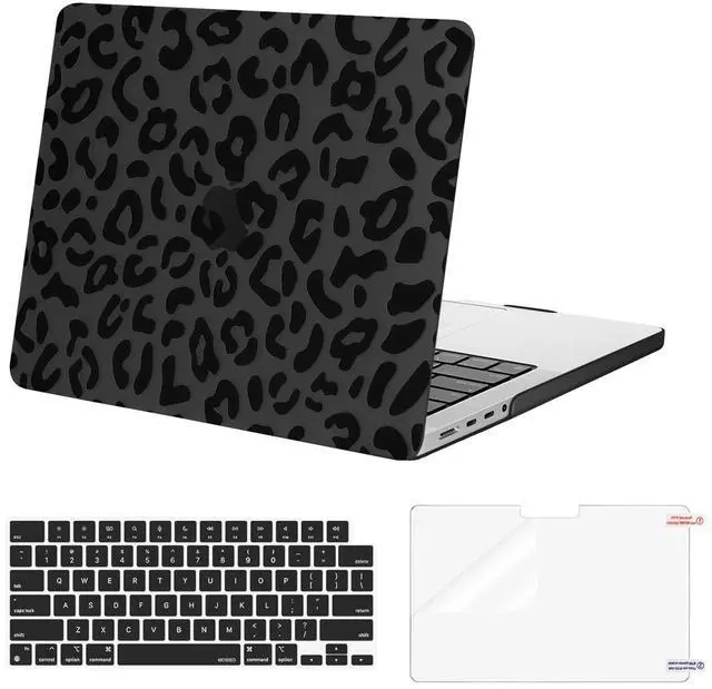 MOSISO Compatible with MacBook Pro 14 inch Case 2025-2021 M4 M3 M2 M1 A3112 A3185 A3401 A2918 A2992 A2779 A2442 Pro Max Chip, Plastic Leopard Grain Hard Shell&Keyboard Cover&Screen Protector, Black