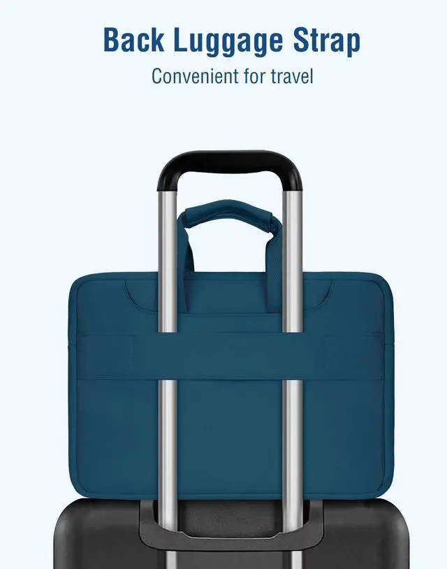 Matching color removable and adjustable padding shoulder strap varied from 29.5 - maximum 52.3 inch, top handles also can tuck away in the pockets when not needed. Large front pocket with inner small pocket keep all your daily accessories well organized. Proviode enough space to keep mouse, pens, mobile phone, cables, cards and other small accessories.