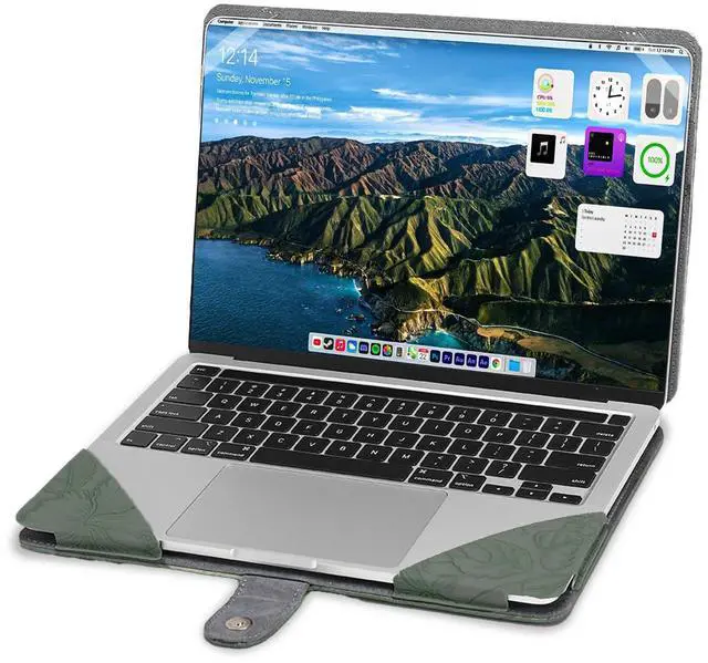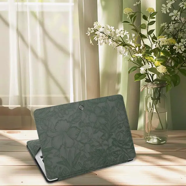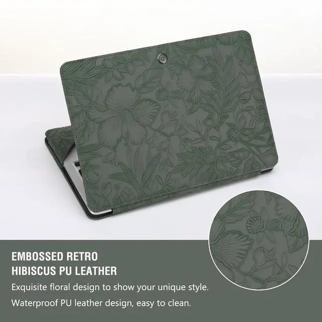 This attractive fashionable front embossed retro hibiscus waterproof PU leather laptop case is ideal for daily use at office, business trip, work, etc. This PU leather portfolio stand case with clear straps at the top corners, magnetic closure and soft interior provide a good protection for your laptop.