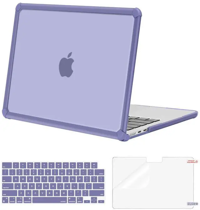 MOSISO Compatible with MacBook Air 13 inch Case 2025 2024 2023 2022 M4 A3240 M3 A3113 M2 A2681, Anti-Cracking Heavy Duty TPU Bumper Hard Case&Keyboard Skin&ScreenFilm for MacBook Air 13.6, Lavender Gray