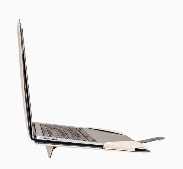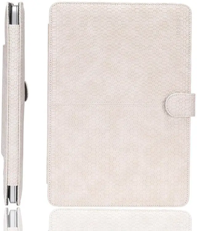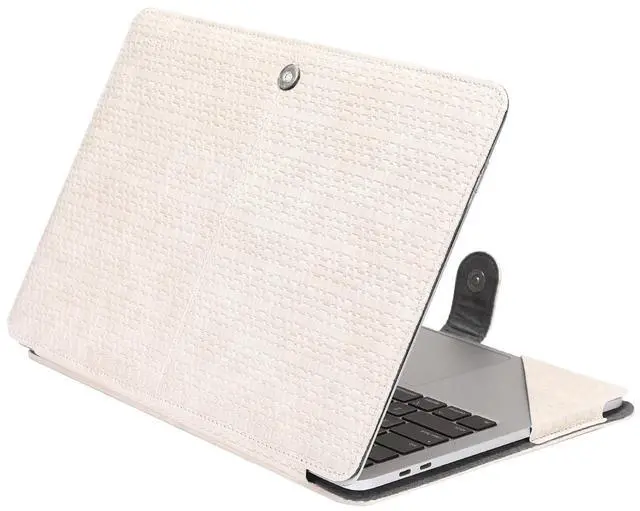 MOSISO Case Compatible with MacBook Air 13.6 inch M4 M3 M2 2025-2022 / Air 13 M1 2022-2018 / Pro 13 inch M2 M1 2025-2016, Bamboo Weave Texture PU Leather Portfolio Protective Stand Cover, Beige