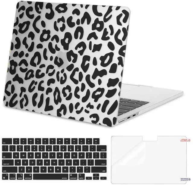 MOSISO Compatible with MacBook Air 13 inch Case 2025 2024 2023 2022 M4 A3240 M3 A3113 M2 A2681, Leopard Grain Hard Case&Keyboard Skin&Screen Film Compatible with MacBook Air 13.6 inch Case,Transparent