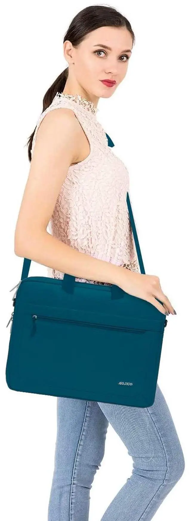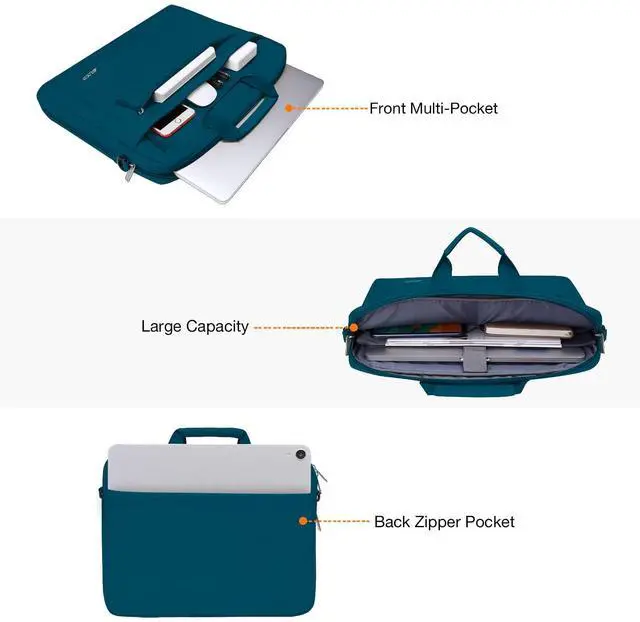 Top-loading zipper on the bag glides smoothly and allows convenient access to your laptop computer. Zipped pocketment will provide extra protection for cell phone, pens and other essentials without making a bulging.
