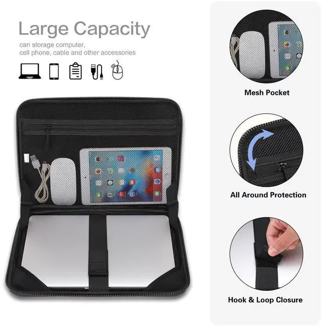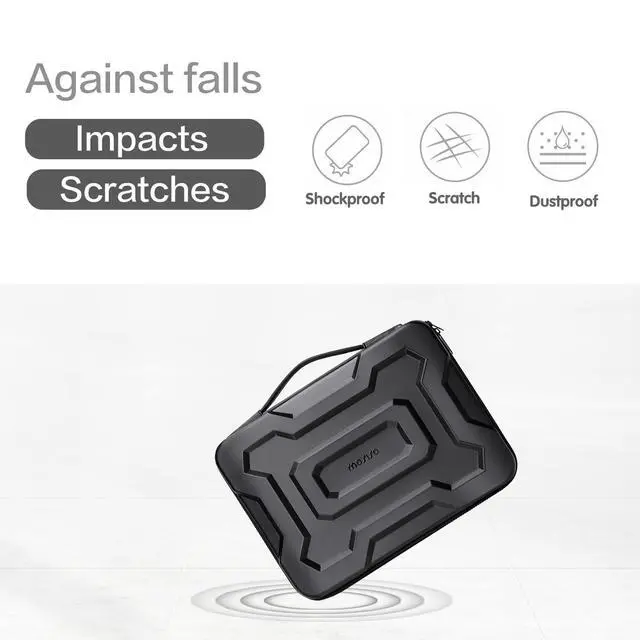 Waterproof Shockproof: Made of mechanical geometric PU EVA material, shockproof, dustproof and waterproof. Iinterior computer pocket with hook and loop fastener can prevent your laptop from shock, scratches and bumps, firm your laptop in right place without any unwanted movement and shaking. The laptop sleeve bag with extendable handle can be fully opened at 180 degree, easily access your laptop and inner pocket allow you put your laptop in the bag conveniently.