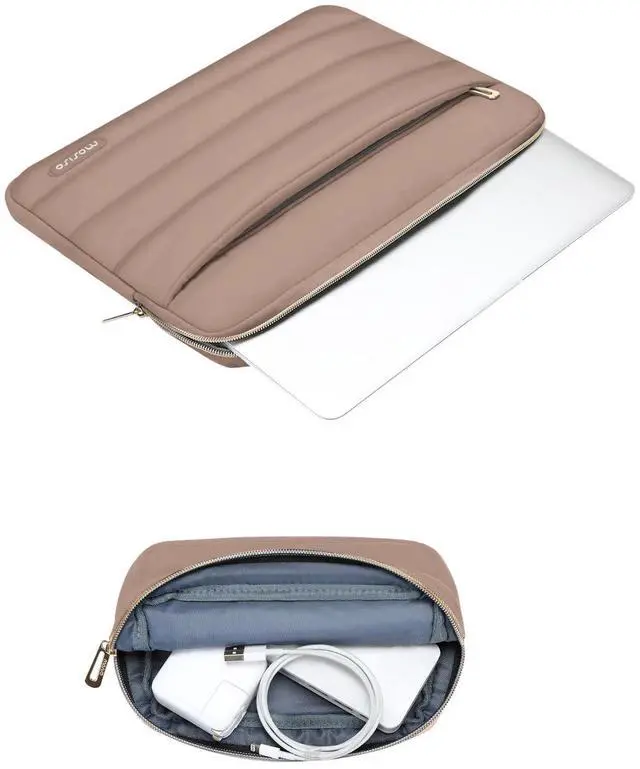 Made with soft touch puffy polyester material, features a polyester foam padding layer and fluffy fleece fabric lining. Protect your laptop from bump, shock and accidental scratches.