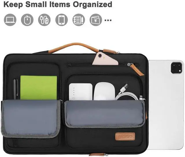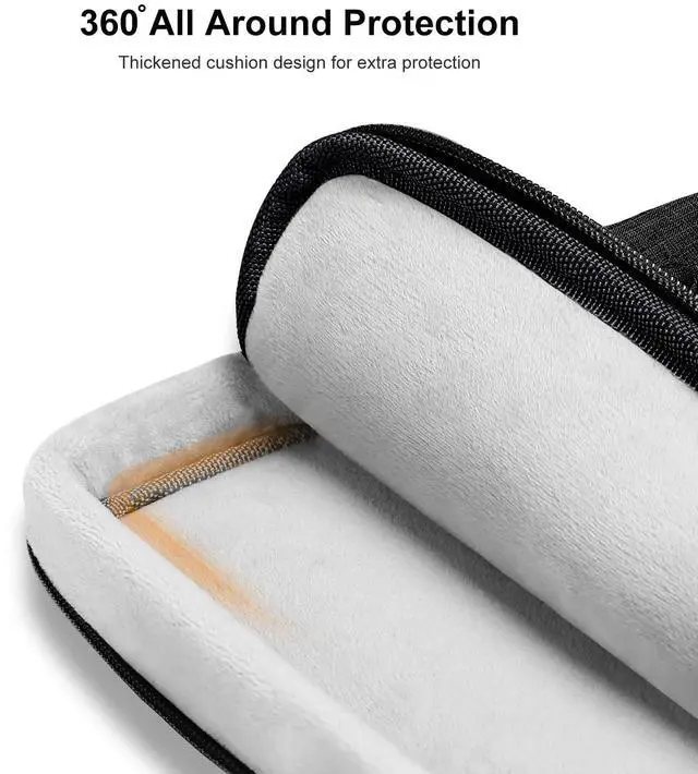 360 degree all around protective reinforced interior edge briefcase carrying case bag protect your tablet from any accidental dropping. Extendable handle design makes it to carry your tablet around in comfort, you can also tuck away the handle. Side opening zipper design, avoid accidental dropping of your tablet while carrying. 4 front zipper pockets provide enough space to keep mouse, earphone, pens and notepads, offering added convenience.