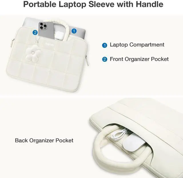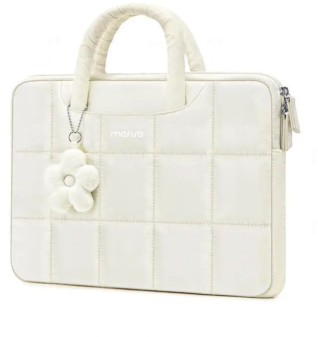 Comfortable padded handle, this laptop sleeve is lightweight and stylish, making it the perfect accessory for young women going out. It's a perfect companion for work, travel and leisure, without adding any extra weight. This computer bag features a stylish rectangle quilted and a detachable elegant flower pendant, seamlessly combining fashion and functionality.
