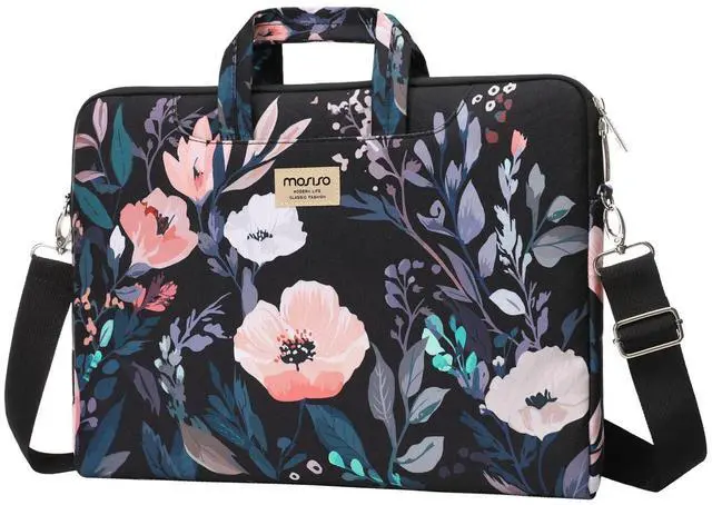 MOSISO Laptop Bag for Women, 15 inch Computer Bag Compatible with MacBook Pro 16 inch, HP, Dell, Lenovo, Asus, Notebook, 15.6 inch Laptop Messenger Shoulder Briefcase with Strap, Floral Illustration