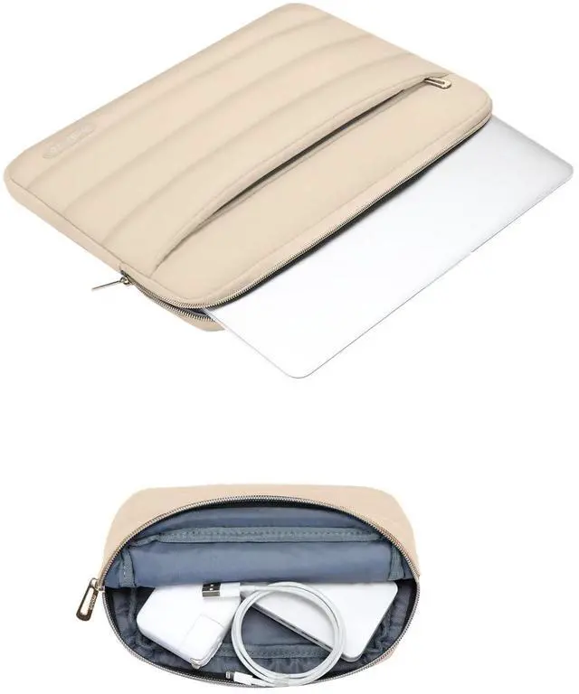 MOSISO 15- 15.6 inch Laptop Case, 16 inch Puffy Laptop Sleeve Compatible with MacBook Pro 16, HP Dell ASUS Acer Toshiba Lenovo Notebook Computer, Polyester Horizontal Bag with Small Case, Apricot
