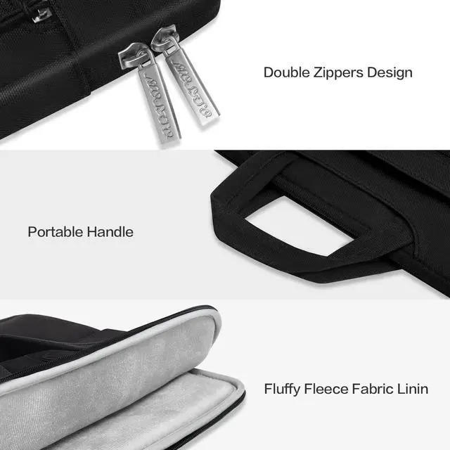 Features a polyester foam padding layer and fluffy fleece fabric lining for bump and shock absorption and protection of your computer from accidental scratches. Top-loading zipper on the bag glides smoothly and allows convenient access to your laptop computer.