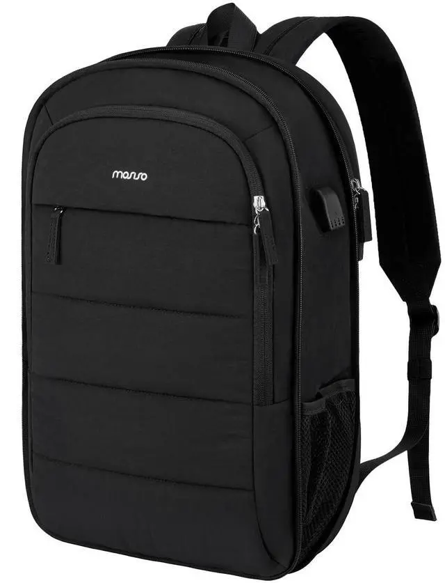MOSISO 15-15.6 inch Laptop Backpack, Puffy Travel Backpack for Women, Quilted Casual Daypack, 16 inch Expandable Carry on Computer Bookbag with USB Port for College Work Business, Black
