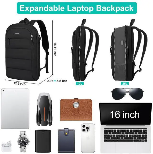 Expandable Laptop Backpack. Dimensions of this backpack is 18.11 x 12.6 x 2.36 inches (L x W x H). Expanded dimensions are 18.11 x 12.6 x 5.9 inches (L x W x H). This lightweight computer backpack with stylish appearance is suitable for a wide range of uses. Can be use as a travel backpack, college backpack, commuting backpack, work backpack and carry on backpack, meet all your daily carry potential, roomy enough for travel accessories.