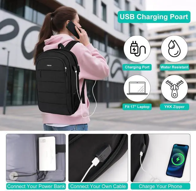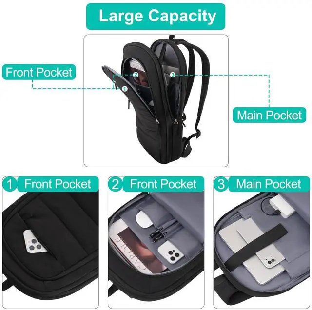 Multi Compartment Backpack. This casual backpack has 3 compartments and a back anti-theft zipper pocket, providing plenty of room for daily essentials. The main compartment can store 16 inch laptop, ipad, books and other items. The second compartment is designed with divider pockets to categorize your items and keep them organized. The front zippered compartment stores your frequently used items for easy access.