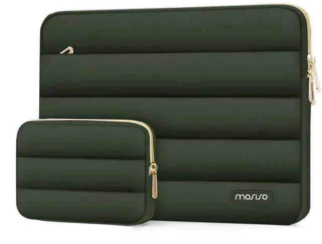 MOSISO 15-15.6 inch Laptop Case, 16 inch Puffy Laptop Sleeve Compatible with MacBook Pro 16, HP Dell ASUS Acer Toshiba Lenovo Notebook Computer, Polyester Horizontal Bag with Small Case, Army Green