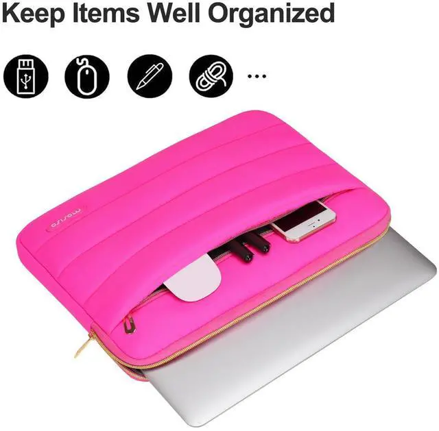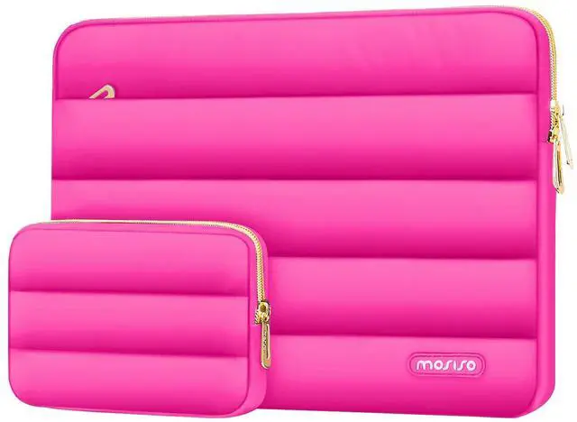 MOSISO 15-15.6 inch Laptop Case, 16 inch Puffy Laptop Sleeve Compatible with MacBook Pro 16, HP Dell ASUS Acer Toshiba Lenovo Notebook Computer, Polyester Horizontal Bag with Small Case, Rose Red