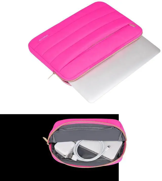 Made with soft touch puffy polyester material, features a polyester foam padding layer and fluffy fleece fabric lining. Protect your laptop from bump, shock and accidental scratches.