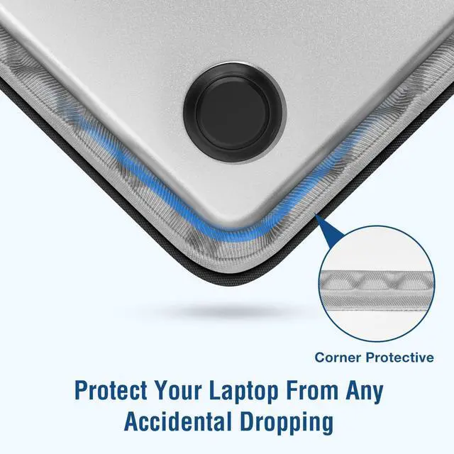 Made with polyester material, features 360 degree all around protective reinforced interior edge & internal upgraded shock resistant bubble foam padding layer, better protect your valuable laptop from dust, dirt, scratches & accidental dropping.