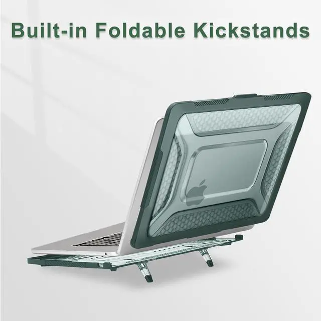 MOSISO Compatible with MacBook Air 15 inch Case 2025 2024 2023 M4 A3241 M3 A3114 M2 A2941, Honeycomb Shockproof Heavy Duty TPU Bumper Plastic Hard Case with Fold Kickstand&Keyboard Cover,Emerald Green