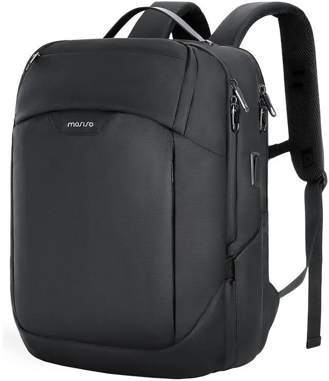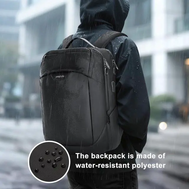MOSISO 15.6 -16 inch Waterproof Laptop Backpack with USB Charging Port & Front Wet & Dry Pocket, Business Commute Backpack, 16 inch Laptop Bag Casual Daypack for College Work Business, Black