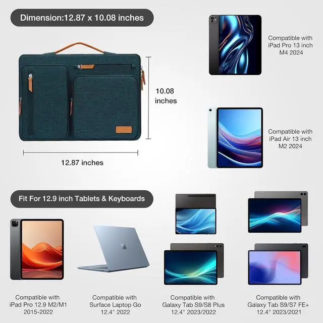 MOSISO 12.9 inch Tablet Sleeve Case for iPad Pro 13 M4 & iPad Air 13 M3 M2, iPad Pro 12.9 M2 M1 6/5th with Magic Keyboard&Smart Keyboard Folio, Side Open Carrying Bag with 4 Zipper Pockets, Teal Green