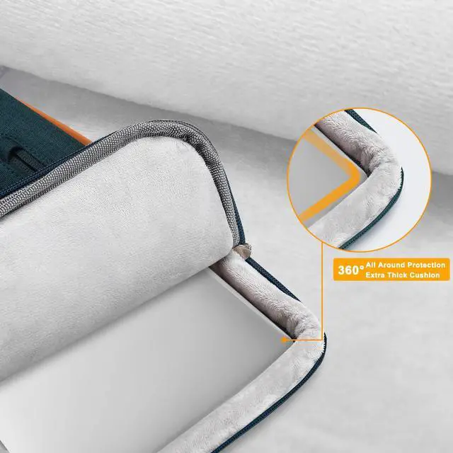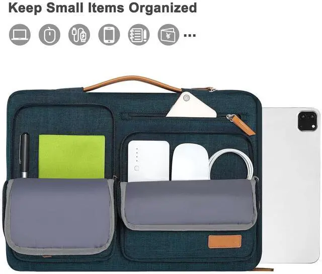 360 degree all around protective reinforced interior edge briefcase carrying case bag protect your tablet from any accidental dropping. Extendable handle design makes it to carry your tablet around in comfort, you can also tuck away the handle. Side opening zipper design, avoid accidental dropping of your tablet while carrying. 4 front zipper pockets provide enough space to keep mouse, earphone, pens and notepads, offering added convenience.