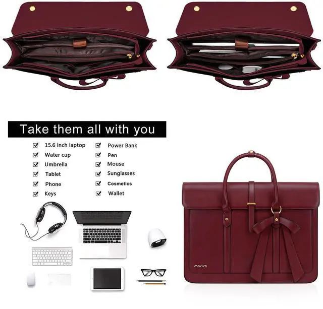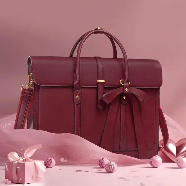 MOSISO Laptop Bag for Women, 13-14 inch PU Leather Laptop Shoulder Bags Convertible Backpack, 13.3 inch Messenger Bags Casual Handbag Work Briefcase Travel Computer Bag with Bowknot, Wine Red