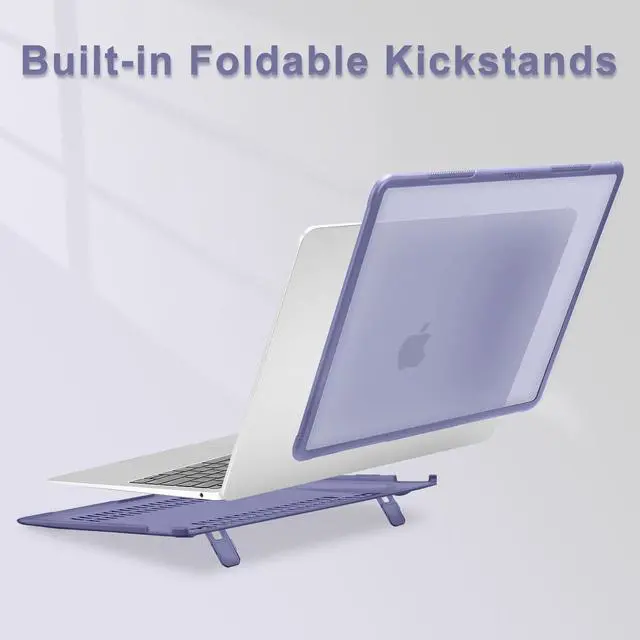 MOSISO Compatible with MacBook Air 13 inch Case 2022, 2021, 2020-2018 A2337 M1 A2179 A1932, Heavy Duty Shockproof Plastic Hard Case with Fold Kickstand&Keyboard Skin&Screen Film&Type C, Lavender Gray