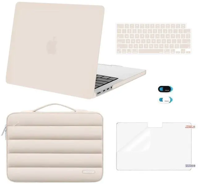 MOSISO Compatible with MacBook Pro 14 inch Case 2025-2021 M5 M4 M3 M2 M1 A3434 A3112 A3185 A3401 A2918 A2992 A2779 A2442, Hard Shell&Puffy Sleeve Bag&Keyboard Cover&Webcam Cover&Screen Film, Sand