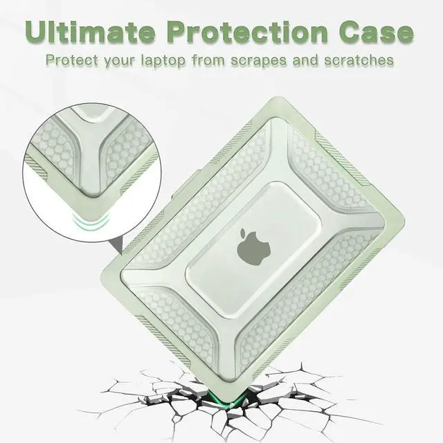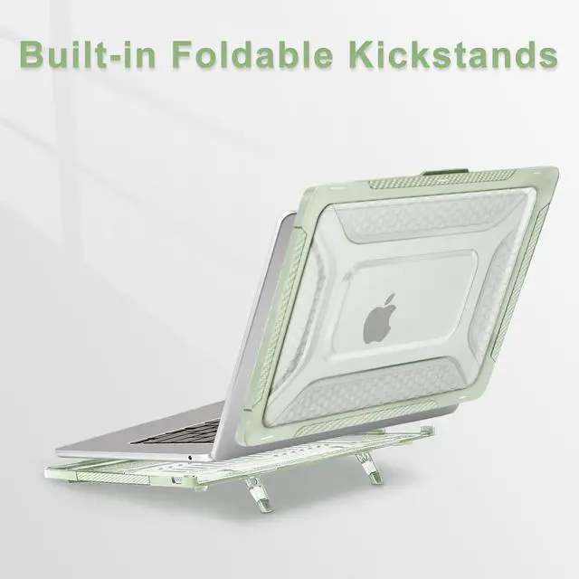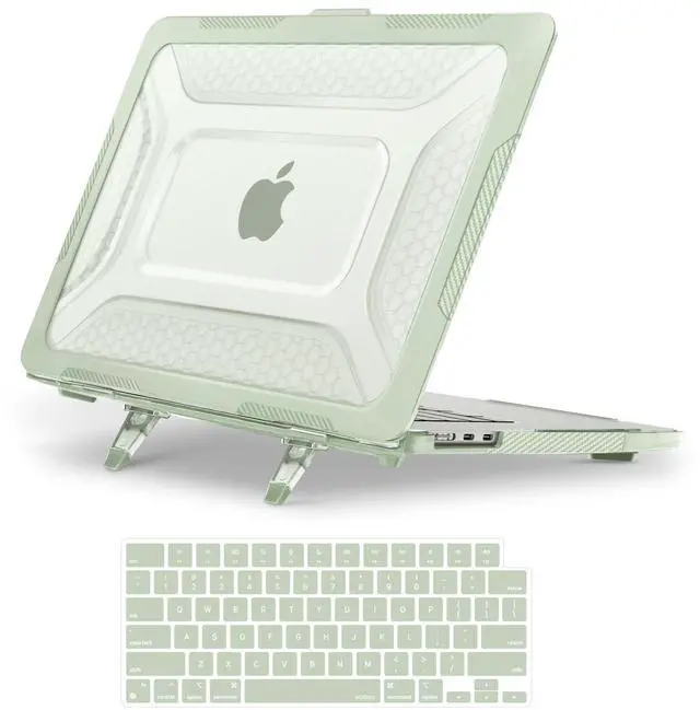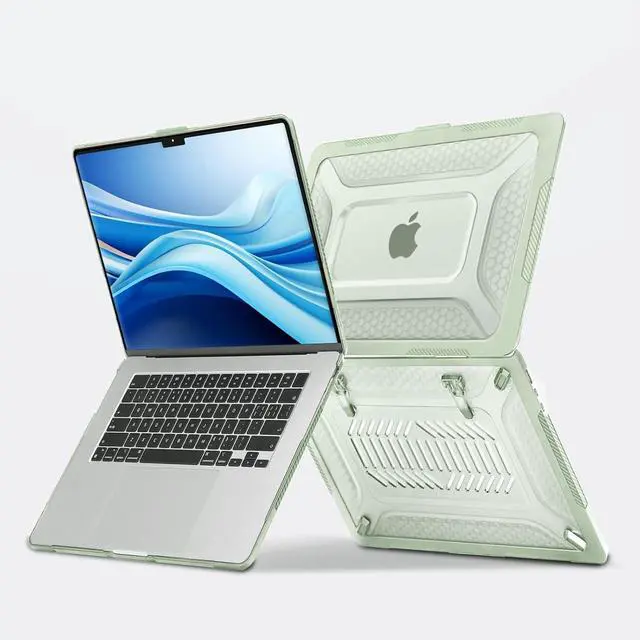 MOSISO Compatible with MacBook Air 15 inch Case 2025 2024 2023 M4 A3241 M3 A3114 M2 A2941, Honeycomb Shockproof Heavy Duty TPU Bumper Plastic Hard Case with Fold Kickstand&Keyboard Cover, Sage Green