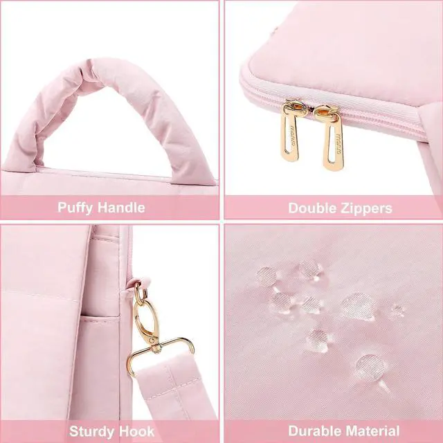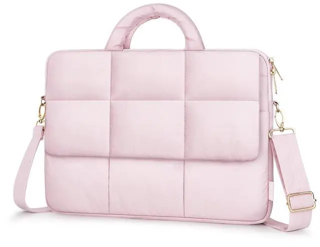 MOSISO Puffy Laptop Shoulder Bag, 15.6 inch Messenger Computer Bags Compatible with MacBook Pro 16 inch, HP, Dell, Lenovo, Asus Notebook, Rectangle Quilted Flapover Sleeve Bag with Zipper&Pocket, Pink