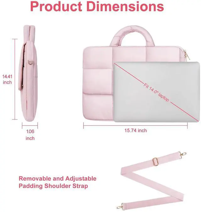 Lightweight and Soft. Made with polyester material, features a polyester foam padding layer and fluffy fleece fabric lining. Protect your laptop from bump, shock and accidental scratches. Top-loading zipper on the sleeve glides smoothly and allows convenient access to your laptop computer.