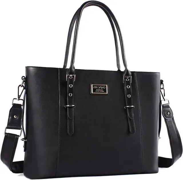 MOSISO PU Leather Laptop Tote Bag for Women (13- 13.3 inch), Waterproof Large Capacity Business Work Briefcase Shoulder Laptop Bag, Black