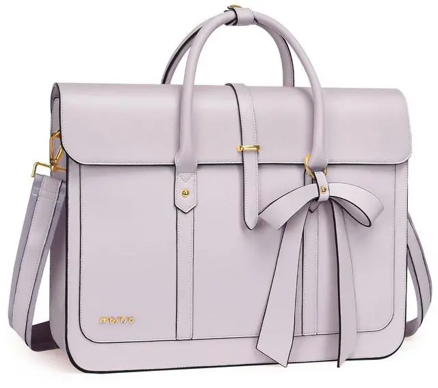 MOSISO Laptop Bag for Women, 13-14 inch PU Leather Laptop Shoulder Bags Convertible Backpack, 13.3 inch Messenger Bags Casual Handbag Work Briefcase Travel Computer Bag with Bowknot, Dusty Lilac