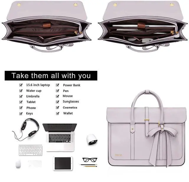 Roomy enough with 3 compartments for all your daily stuff. The computer compartment in the middle provides a thick padded foam section with a hook & loop strap closure for your laptop or tablet. Professional design to protect your laptop against accidental impacts and scratches. The other two side compartments can store your jewelry, mobile phone, keys, mouse, passports, c