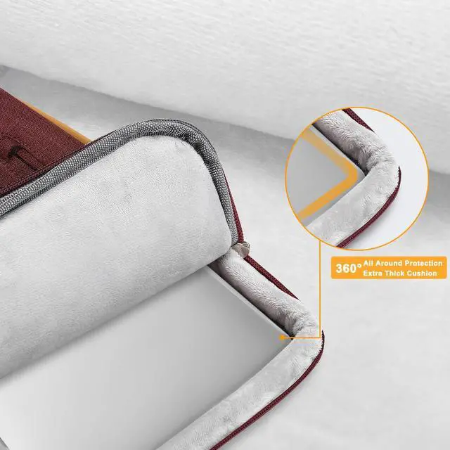360 degree all around protective reinforced interior edge briefcase carrying case bag protect your laptop from any accidental dropping. Extendable handle design makes it to carry your laptop around in comfort, you can also tuck away the handle. Side opening zipper design, avoid accidental dropping of your laptop while carrying. 4 front zipper pockets provide enough space to keep mouse, earphone, pens and notepads, offering added convenience.